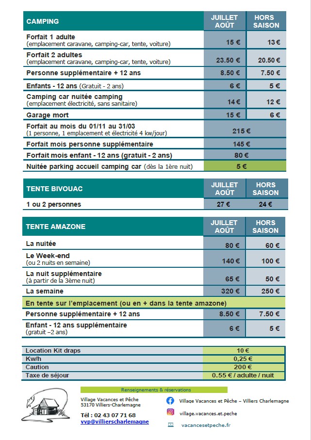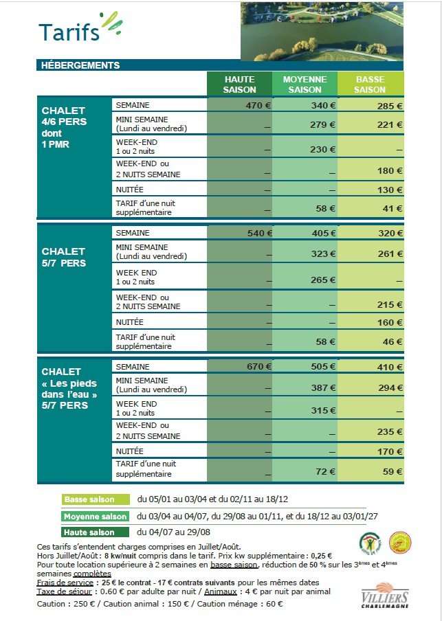Les tarifs NOS TARIFS de location des chalets et camping 2026 Téléchargez les tarifs en cliquant sur ce lien : Tarif Camping 2026 Téléchargez les tarifs en cliquant sur ce lien : tarif Chalet 2026